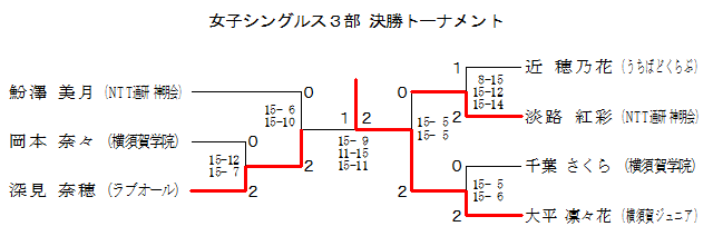| 女子シングルス3部 Cブロック | 近 | 大場 | 吉良 | 順位 |
