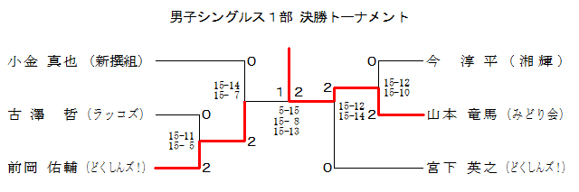 | 男子シングルス1部 Bブロック | 宮下 | 松岡 | 浜田 | 古畑 | 順位 |